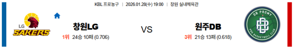 01월28일 창원LG:원주DB KBL 분석 및 예측 스포츠중계:스포츠무료중계
