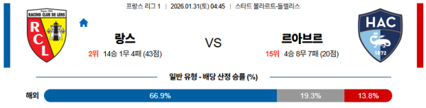 01월31일 랑스:르아브르 리그앙 분석 및 예측 스포츠중계:스포츠무료중계