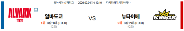 02월04일 알바르크도쿄:뉴타이베이킹스 EASL 분석 및 예측 스포츠중계:스포츠무료중계