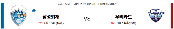 01월22일 삼성화재:우리카드 V리그 분석 및 예측 스포츠중계:스포츠무료중계