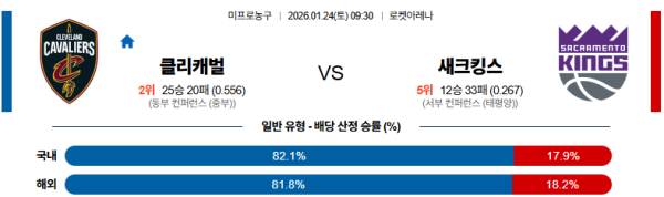 01월24일 클리블랜드:새크라멘토 NBA 분석 및 예측 스포츠중계:스포츠무료중계